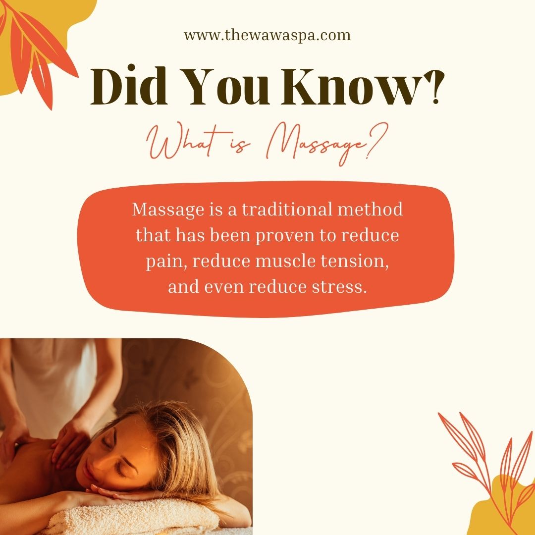 - Combination of massage techniques such as kneading (applying pressure onto muscles), hacking (light and fast movements), and effleurage (repeated circular movement stroked using hand palm)